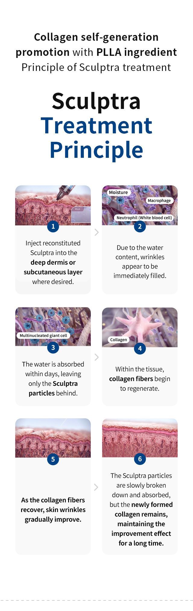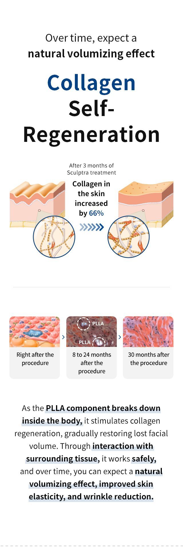 従来のフィラーとは異なり、スカルプトラは徐々に効果を発揮します。4~6週間以内に効果が現れ始め、コラーゲンが自然に再生する2~4ヶ月かけて完全な効果が現れます。