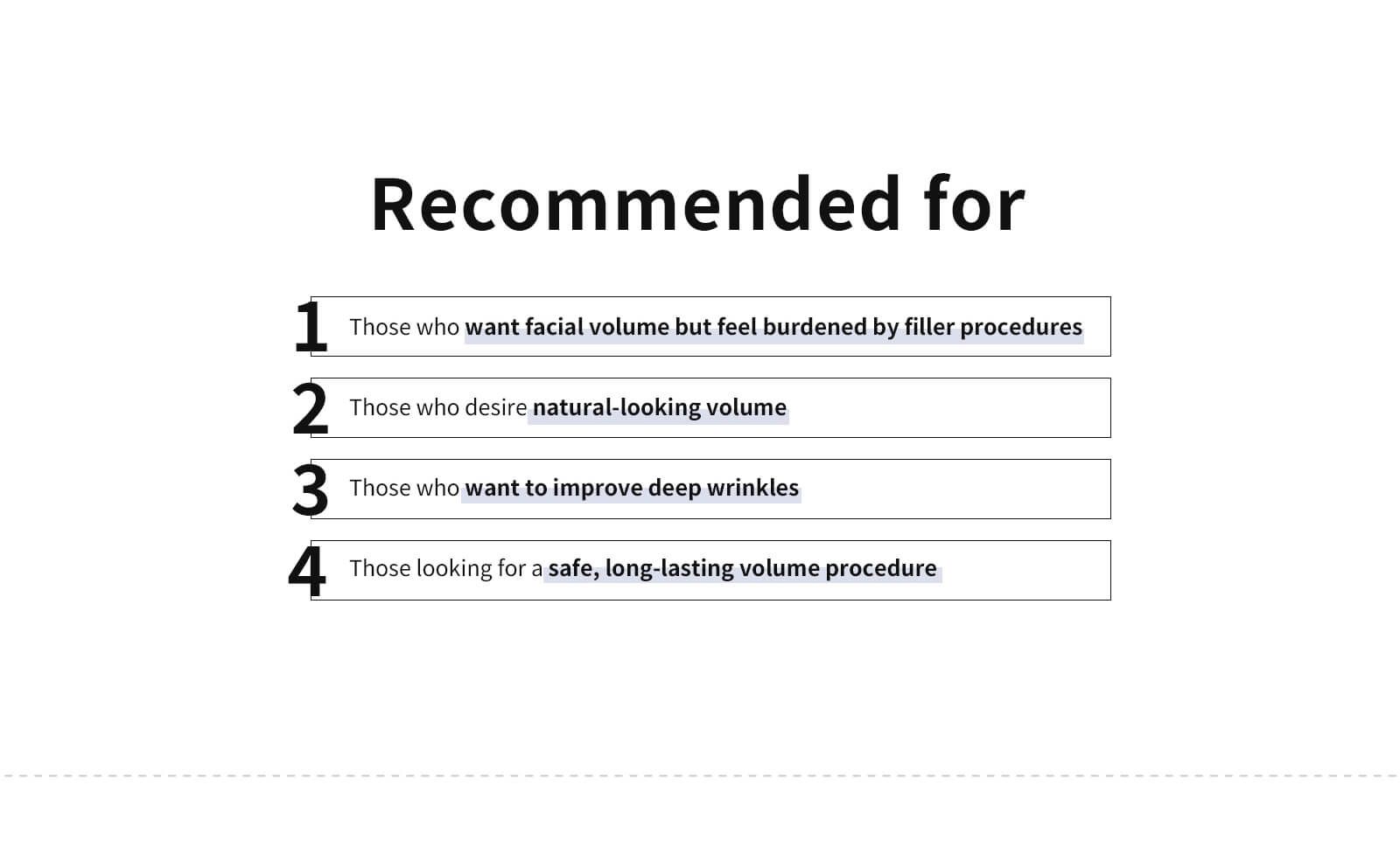 - ต้องการการฟื้นฟูผิวในระยะยาวแทนการใช้ฟิลเลอร์ชั่วคราว