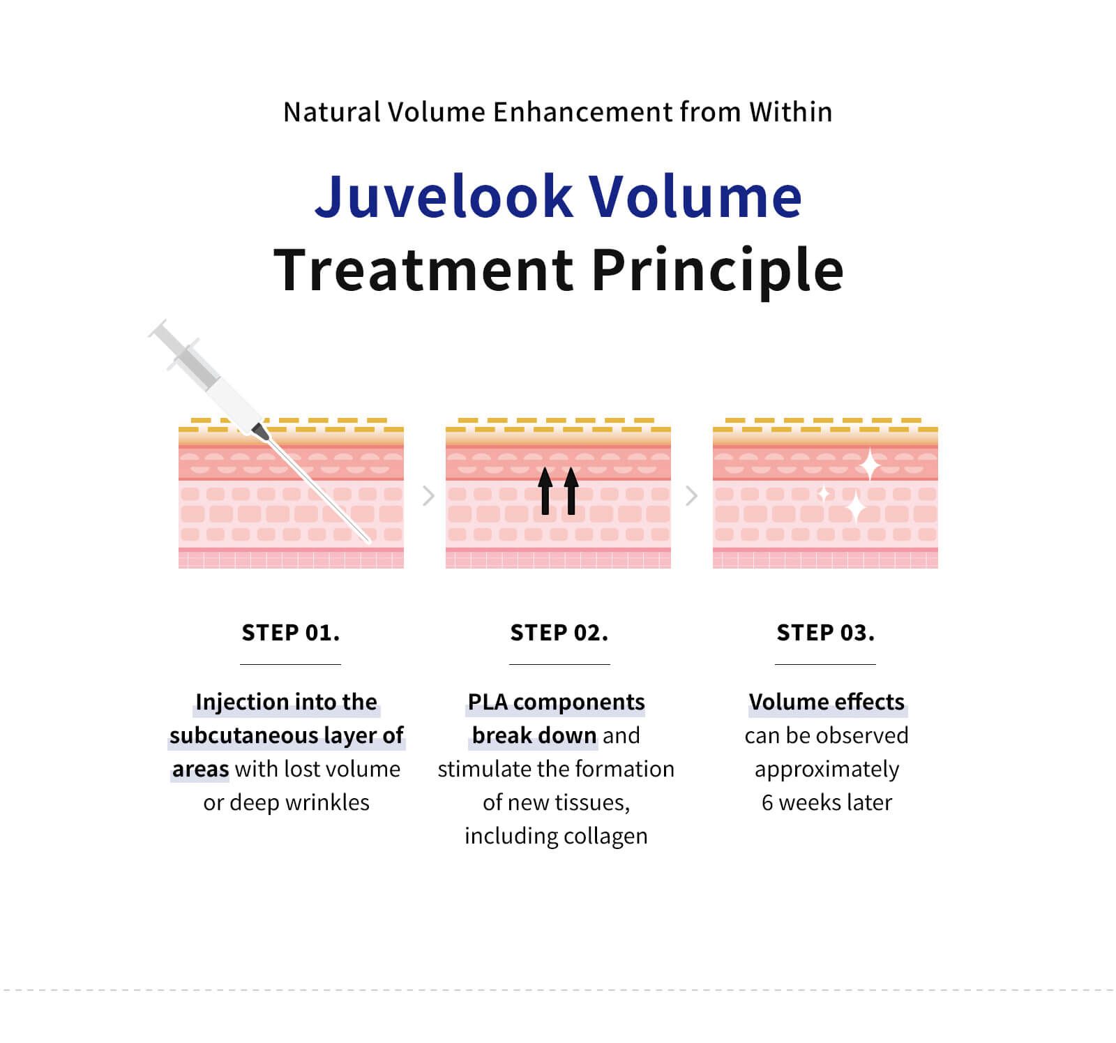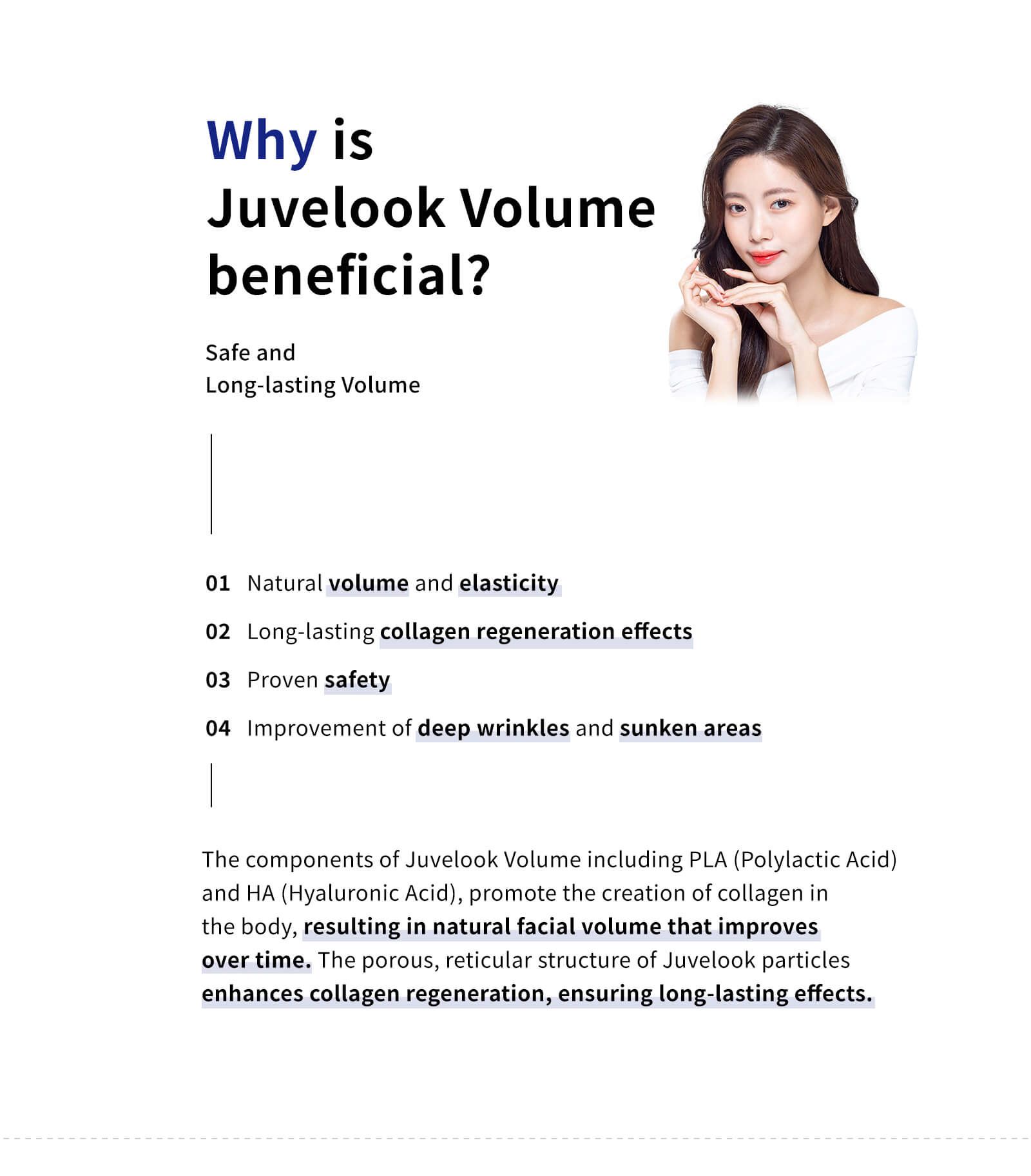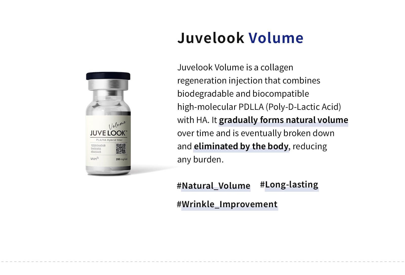 Juvelook Volume is a hybrid injectable combining hyaluronic acid (HA) with PDLLA (poly-D,L-lactic acid). The HA provides instant hydration and plumpness, while the PDLLA particles stimulate long-term collagen production for firmer, smoother, and more lifted skin.